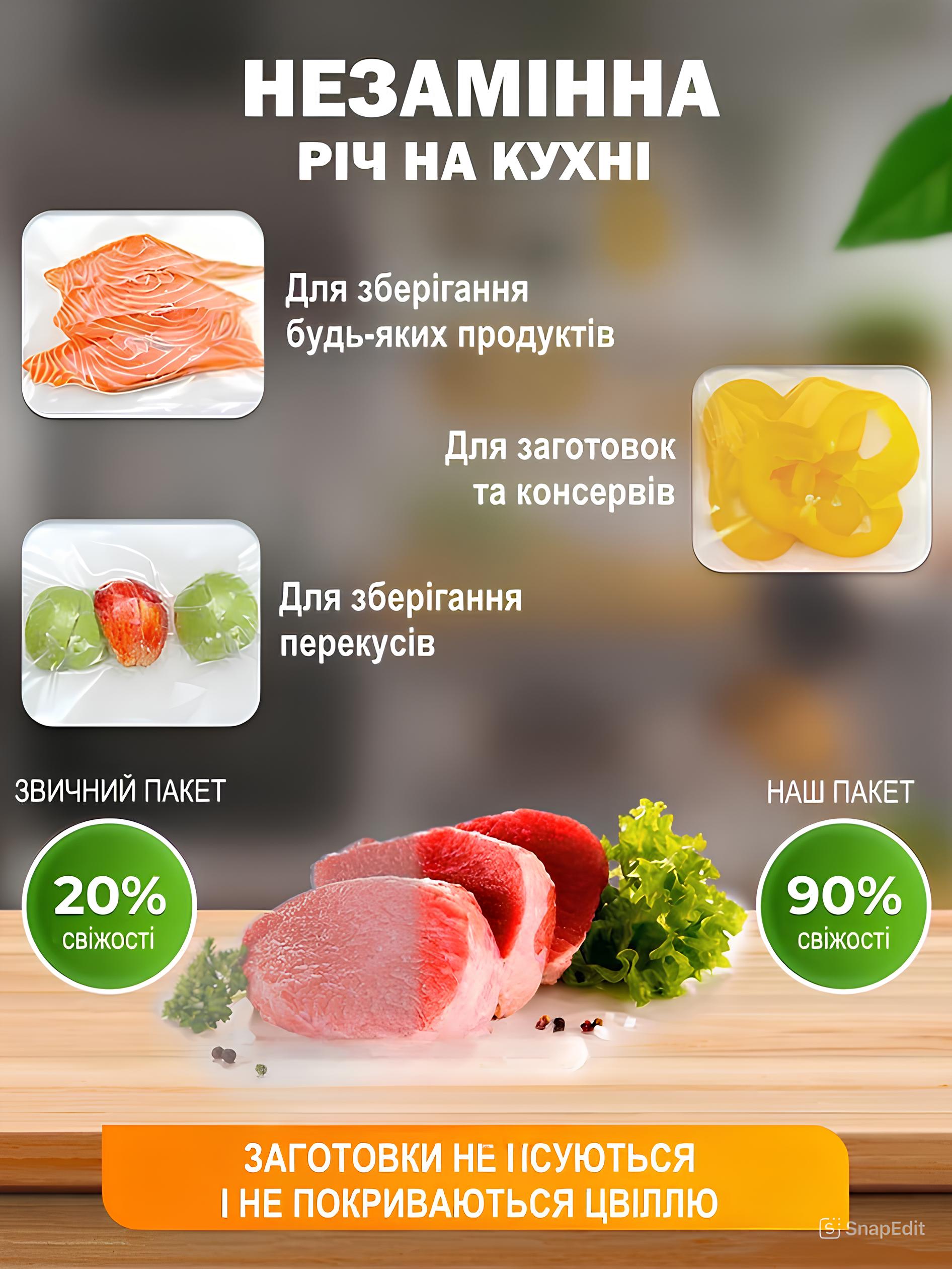 За допомогою створення вакууму в пакеті продукти зберігаються набагато довше, а їх поживна цінність вища.